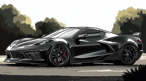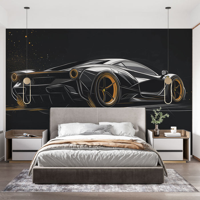 Discover our poster featuring an elegant sports car with refined curves and innovative design. With its black color accented with golden touches, this illustration embodies speed and power, ideal for car enthusiasts who want to bring a modern touch to their decor.