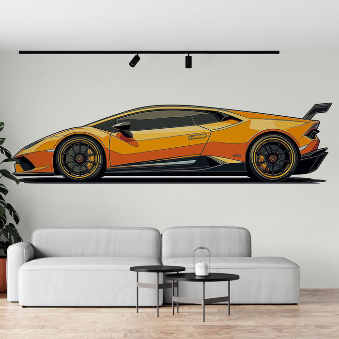 This piece is ideal for decorating an office, a game room, or any space dedicated to speed lovers. The minimalist background highlights the vibrant color and aesthetic design of the car.