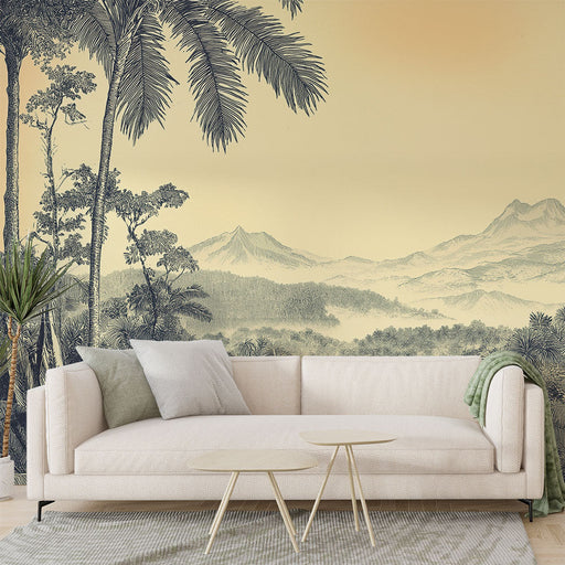 Mural Wallpaper tableau imitation | Jungle landscape in black and white