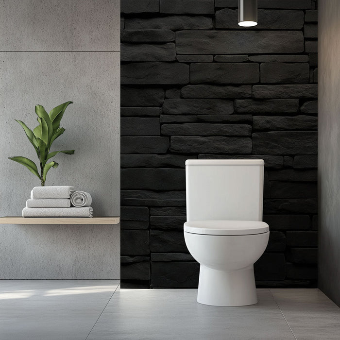 Mural Wallpaper toilet | Imitation black stones sophisticated ambiance