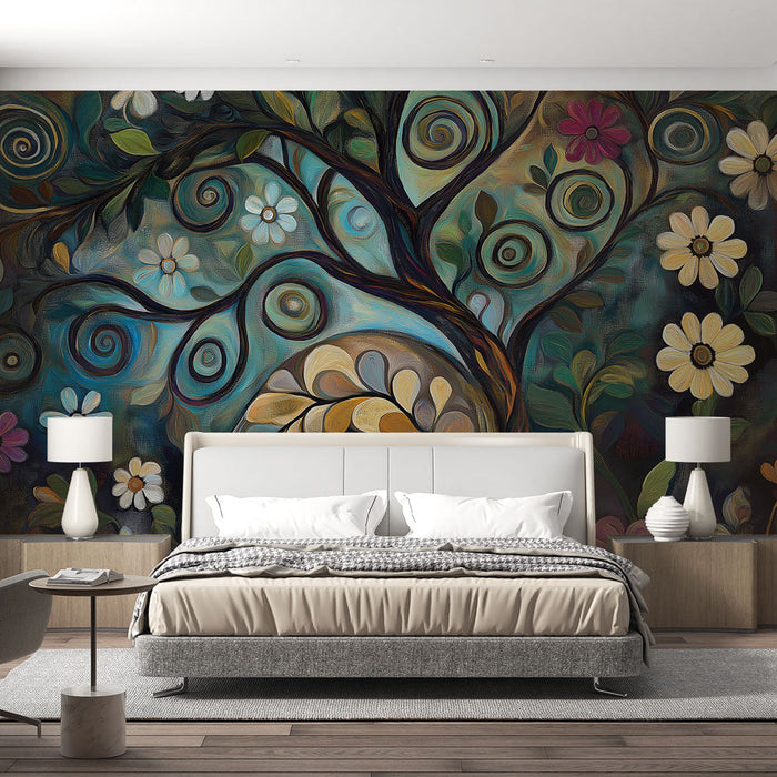 Mural Wallpaper tree of life | Artistic design with spirals and flowers