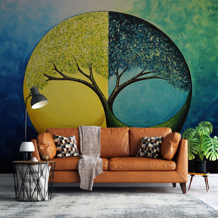 Mural Wallpaper tree yin yang | Balance of colors and nature