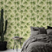 Our Mural Wallpaper features a charming motif of tropical leaves in shades of green, creating a refreshing and lively atmosphere. The light background highlights the patterns, bringing a feeling of lightness ideal for modern interiors.