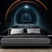 This mural wallpaper offers a captivating panorama of a railway tunnel, immersed in a mysterious atmosphere. The tracks, leading towards a dim light, add a dimension of depth and intrigue to your interior. The shades of black and blue create an ambiance that is both modern and avant-garde, perfect for lovers of architectural designs.