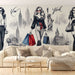 Evoke the energy of urban life with our urban fashion mural wallpaper inspired by New York. Featuring elegant illustrations of fashionable women strolling through the heart of the city, surrounded by iconic symbols like the Empire State Building and the Statue of Liberty, this mural wallpaper is perfect for creating a chic and cosmopolitan atmosphere.