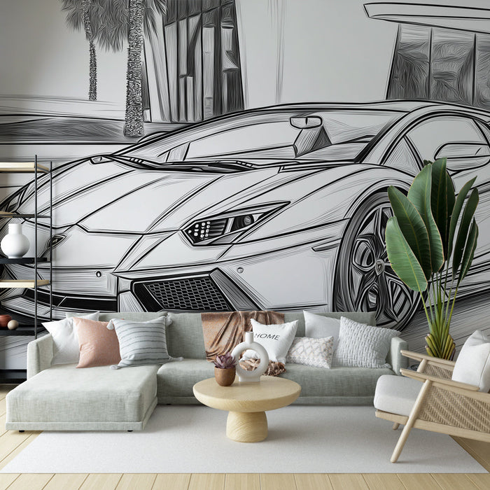 Mural Wallpaper sport vehicle | Lamborghini Aventador stylized