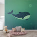 This enchanting mural wallpaper features a stylized whale gracefully swimming in deep, calming waters. With varied shades of green and floating air bubbles, this design creates a magical maritime atmosphere that will transport viewers to an underwater world.