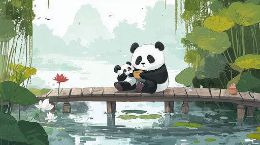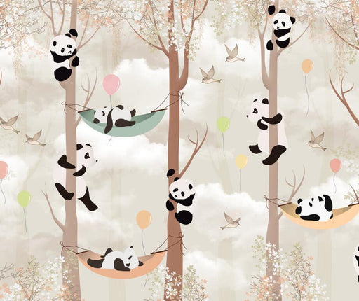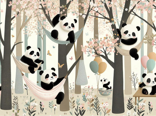 Every glance at this mural transports you into a world of reverie and poetry, where nature expresses itself with grace and delicacy. Let yourself be enchanted by the magic of this enchanting scene and discover a new way to beautify your interior with this panoramic panda wallpaper that transforms your wall into a true work of art.