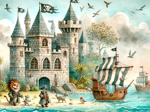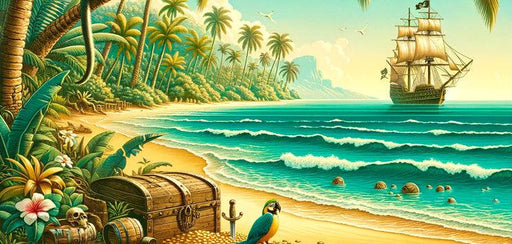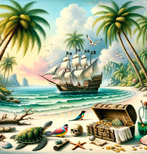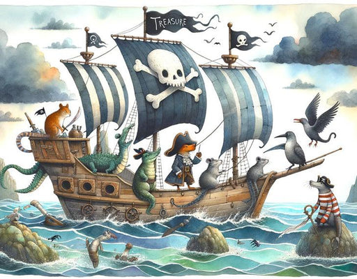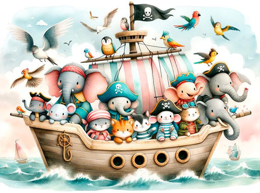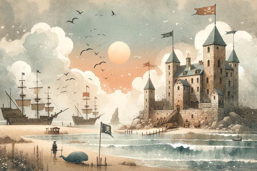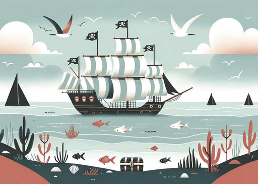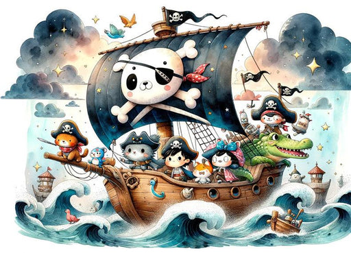Let this Children's pirate wallpaper transport you to a world where dreams meet reality, where every day can end with an epic journey under the moonlight. It's not just a Pirate ship wallpaper, it's a gateway to imagination, a link between the modern world and the tales of sailors from the past. Install this Pirate tapestry and give your room an ambiance that invites travel and nocturnal contemplation.