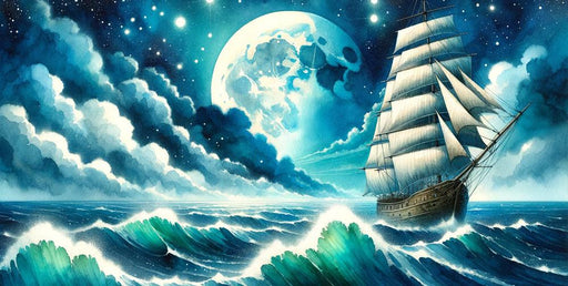 Pirate Mural Wallpaper | Waves and Full Moon in Watercolor