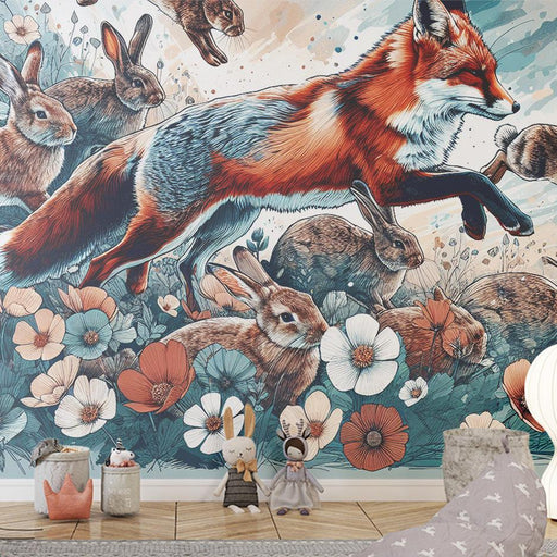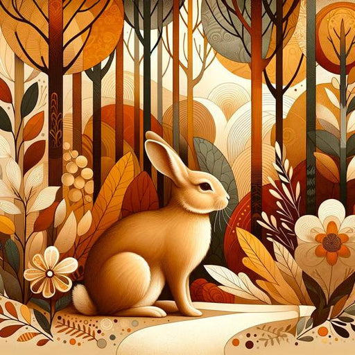 Immerse yourself in the vastness of nature with the massive Rabbit Forest wallpaper in earthy colors. This captivating artwork transports you to the heart of a lush forest where rabbits roam among majestic trees and earthy tones. The warm tones and intricate details create an immersive atmosphere, transforming your wall into an open window to the harmony of nature.