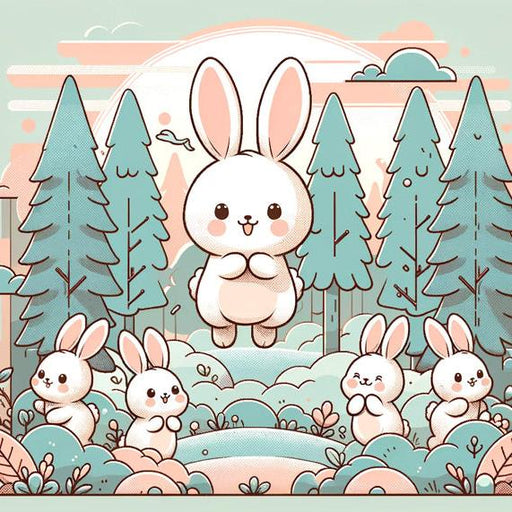 This rabbit wallpaper showcases a group of rabbits in a dense and verdant forest, evoking the richness and diversity of the forest ecosystem. Each brushstroke is executed with remarkable precision, capturing the beauty and authenticity of this natural environment. The earthy colors and shades of green add a touch of rusticity to this rabbit tapestry, inviting you to immerse yourself in the tranquility of the forest.