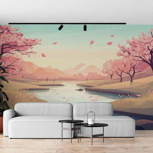 Sakura Mural Wallpaper | Japanese Bonsai Tree with Pink Flowers