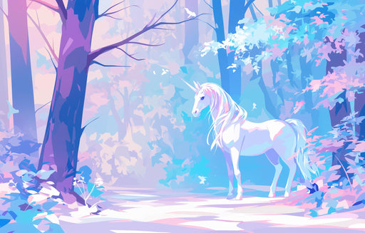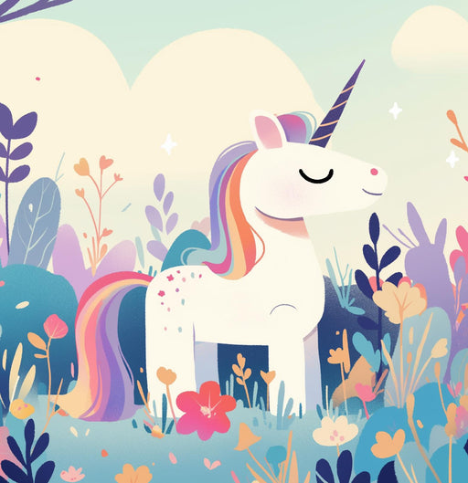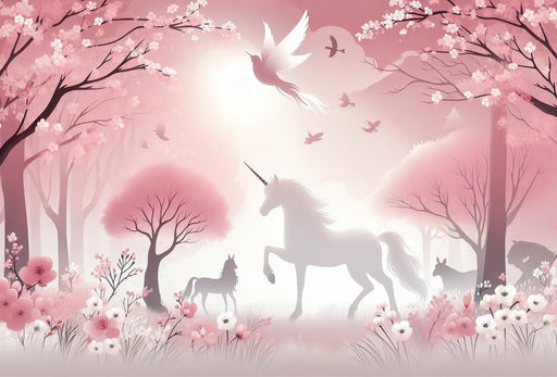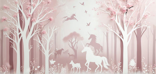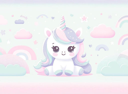 Explore also our more modern versions of unicorn mural wallpapers, where minimalist illustrations and pastel tones meet contemporary style. Perfect for a subtle yet playful decoration, these designs fit well in a child's bedroom as well as unique spaces like an office or a playroom.