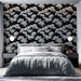 The finely detailed leaves appear to float on the wall, creating an atmosphere that is both soothing and dynamic. The combination of black and white highlights the patterns while offering timeless elegance.