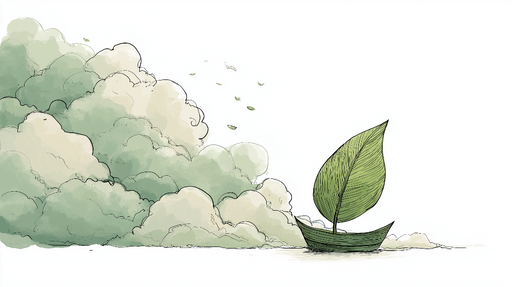 Ver todos os detalhesPapel de parede mural barco em folha | Barco à vela em forma de folha navegando pelas nuvens