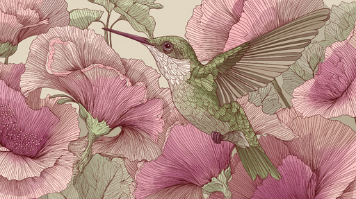 Ver todos os detalhesPapel de parede colibri | Ilustração elegante de beija-flores e folhagens delicadas