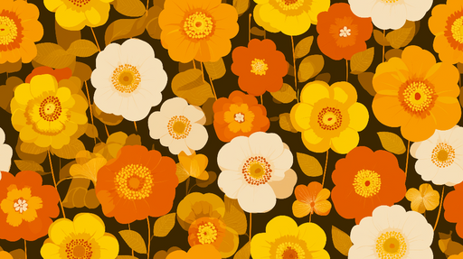 Ver todos os detalhesPapel de parede floral amarelo e laranja | Padrão de flores brilhantes em fundo escuro