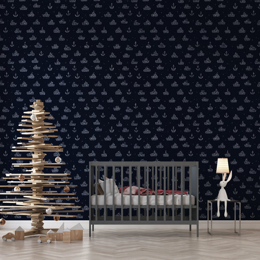 Ver todos os detalhesPapel de parede navy | Barcos e âncoras em fundo azul marinho