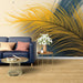 Este elegante papel de parede mural destaca uma graciosa folha de palmeira amarela, lindamente desenhada, que contrasta com um fundo texturizado em tons de bege e azul escuro. O movimento e a leveza das folhas trazem uma sensação de natureza e frescor para o seu interior.