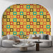 Adicione um toque único ao seu interior com o nosso papel de parede mural geométrico quadrado. Seus padrões coloridos em tons de vermelho, azul, laranja e marrom, em um fundo amarelo, oferecem uma estética moderna e dinâmica. Perfeito para trazer vivacidade e estilo a qualquer ambiente.