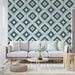 Este papel de parede mural geométrico apresenta um padrão cativante de diamantes azuis e cinzas, perfeito para adicionar um toque moderno e elegante a qualquer ambiente. Ideal para uma sala de estar contemporânea ou um quarto sofisticado, este design chamativo chama a atenção, mantendo-se discreto e chique.