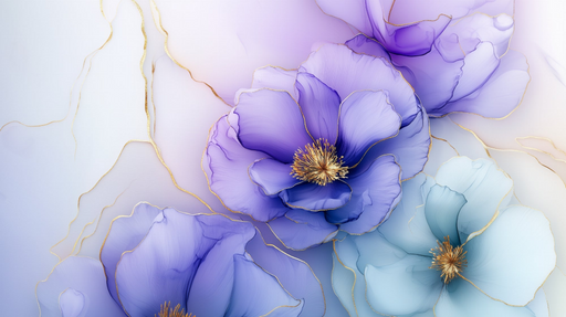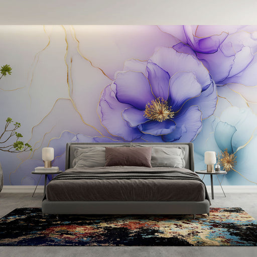 Art'loloAdicione um toque de refinamento ao seu interior com o nosso papel de parede floral adornado com belas flores roxas e azuis com detalhes dourados. ...