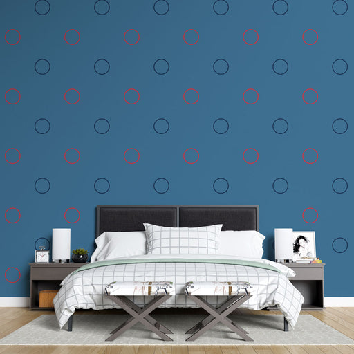 Studio SamaTransforme seu espaço com este papel de parede mural retrô com padrões de círculos em azul e vermelho. Perfeito para adicionar um toque de dinamism...