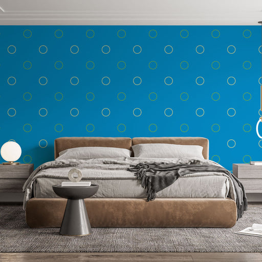 Studio SamaAdicione um toque lúdico e moderno ao seu interior com o nosso papel de parede mural com pontos apresentando círculos amarelos em um fundo azul vib...