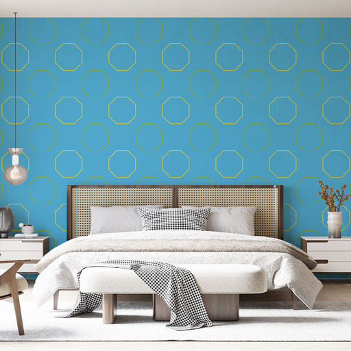 Ver todos os detalhesPapel de parede com padrões geométricos | Design azul e moderno
