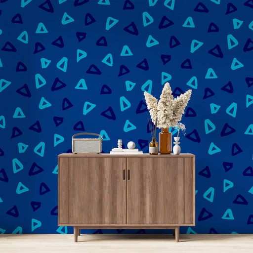 Studio SamaAdicione um toque moderno com nosso papel de parede mural gráfico com padrões triangulares azuis. Os tons de azul trazem uma atmosfera fresca e din...