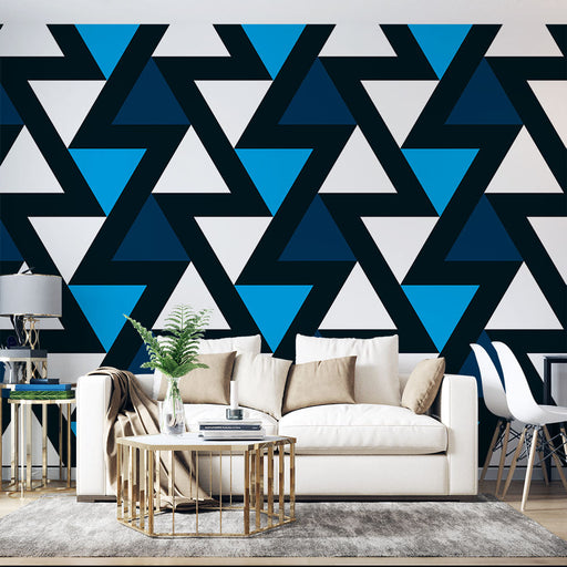 Studio SamaDescubra nosso papel de parede mural geométrico com padrões de triângulo azul e preto, perfeito para trazer um toque moderno e dinâmico ao seu inte...