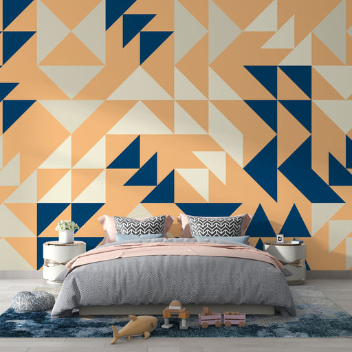 Ver todos os detalhesPapel de parede | Triângulo bege e azul em fundo pêssego