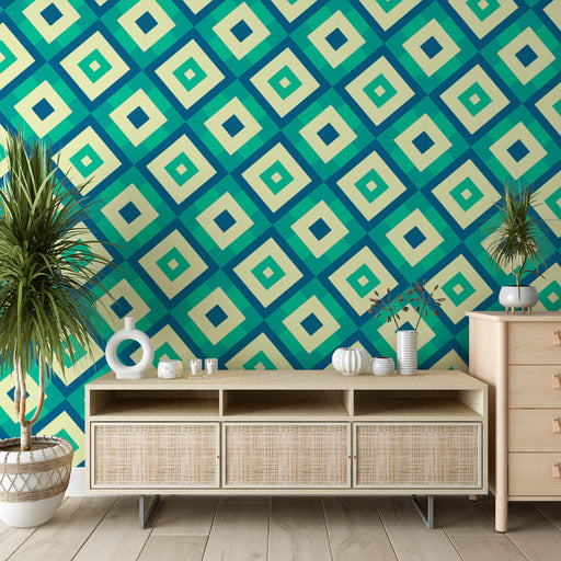 Ver todos os detalhesPapel de parede | Quadrados em azul e verde