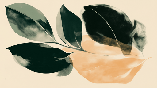 WonderMuralEste papel de parede mural oferece uma composição artística de folhas abstratas, misturando tons de verde escuro e pêssego pastel em um fundo bege ...