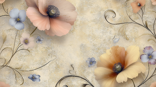 WonderMuralDescubra nosso papel de parede floral com um impressionante padrão de flores delicadas com tons quentes e dourados, destacando-se em um fundo bege ...