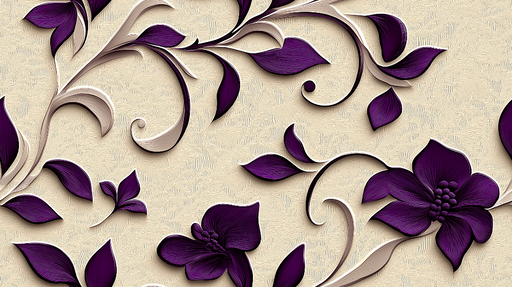 WonderMuralEste papel de parede mural apresenta um elegante padrão floral em relevo combinando tons de roxo profundo em um fundo bege suave. Os padrões delica...