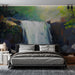 Nosso papel de parede mural apresenta uma magnífica cachoeira com reflexos luminosos, cercada por uma vegetação densa e vibrante. As cores ricas, que variam de verdes profundos a azuis claros, evocam uma atmosfera de serenidade e conexão com a natureza. O jogo de luz na água e nas rochas adiciona uma dimensão realista e calmante ao seu interior.