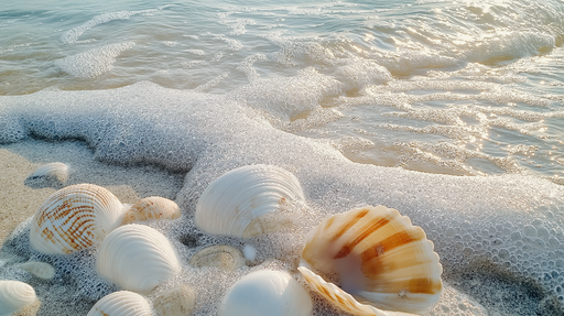Papel de parede concha do mar | Padrão de concha do mar na praia com ondas e espuma