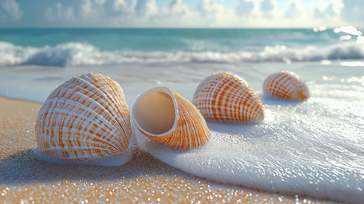 Papel de parede conchas do mar | Conchas do mar em uma praia ensolarada