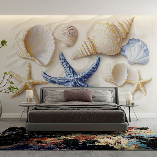 Este cativante papel de parede mural apresenta um design artístico de vários conchas e estrelas do mar, evocando praias ensolaradas e charme marinh...