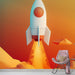 Este cativante papel de parede mural apresenta um foguete estilizado subindo aos céus, cercado por nuvens geométricas em tons quentes. As cores vibrantes, que vão do laranja ao turquesa, criam uma atmosfera dinâmica e inspiradora, ideal para quartos infantis ou espaços criativos.