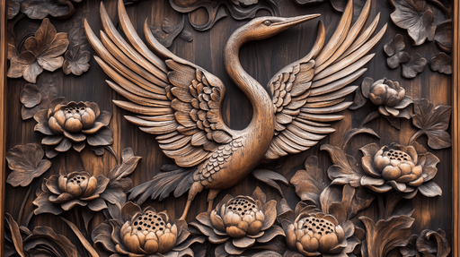 Ver todos os detalhesPapel de parede grua e lótus | Esculturas de madeira