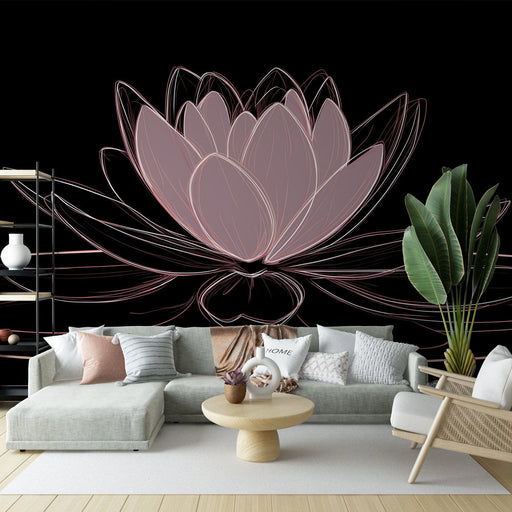 Ver todos os detalhesPapel de parede lótus | Ilustração elegante de lótus com contornos delicados