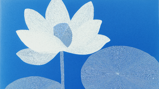WonderMuralEste papel de parede mural apresenta uma ilustração elegante de uma flor de lótus branca, delicadamente desenhada em um fundo azul brilhante. O des...