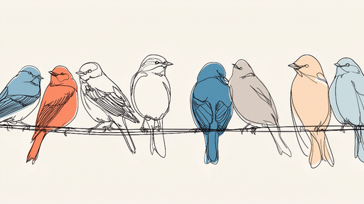 WonderMuralEste papel de parede apresenta uma elegante linha de pequenos pássaros, cada um ilustrado com um estilo minimalista e contemporâneo. Os pássaros, e...