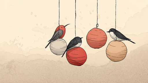 Ver todos os detalhesPapel de parede pássaros e lanternas | Pássaros estilizados pousados em lanternas coloridas