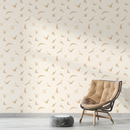 Ver todos os detalhesPapel de parede pássaros | Padrão delicado de pássaros voando em um fundo creme