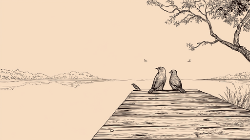 Ver todos os detalhesPapel de parede pássaros em um cais | Uma cena tranquila com pássaros observando a paisagem