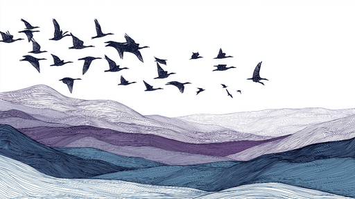Ver todos os detalhesPapel de parede paisagem de montanhas e pássaros | Pássaros em um fundo de montanhas com linhas fluidas